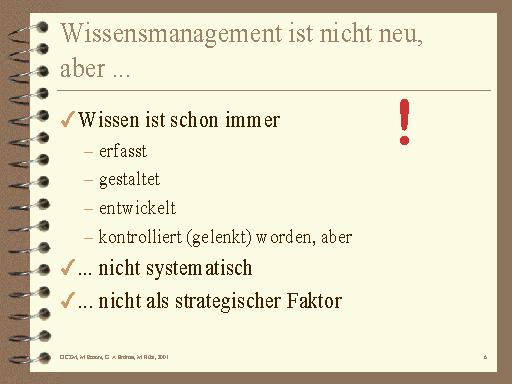 Ausserdem ist das Wissen in vielen Unternehmen (noch) nicht als strategischer Faktor erkannt worden.